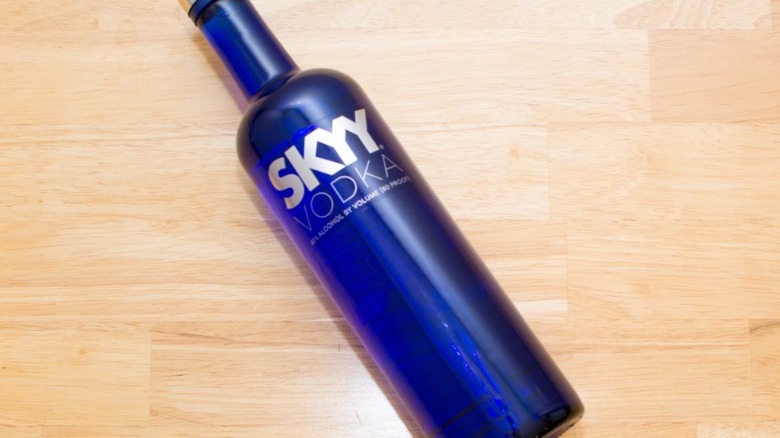 Not all cheaper vodkas are necessarily hidden in the bar well. If anything, Skyy vodka — packaged in its trademark and eye-catching cobalt blue bottle — is a recognizable mainstay on the back bar of many establishments and home liquor cabinets. This ubiquity is likely thanks to its status as a member of the formidable Campari family of spirits after it was purchased in 1996, where it resides alongside other house brands like Wild Turkey and Grand Marnier (in addition to its namesake stark red bitter aperitif, of course). As of 2024, it was still holding onto its title as the company's top-selling brand in the U.S.