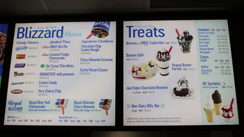 Dairy Queen, the easily recognizable soft serve stop that offers cones with the signature — and trademarked — curl, has been around since 1940. Named because the original proprietor, J.F. McCullough, considered the cow to be "the queen of the dairy business," DQ soft serve can be found today at franchises in all but one U.S. state and across another 19 countries worldwide. Though the restaurant chain menus have been serving savory fast food since the 1950s, these items are secondary to the frozen treats. Dairy Queen remains most popular for the desserts on its menu, such as the classic vanilla soft serve, the beloved Dilly Bars, the renowned Blizzards, and even ice cream cakes.