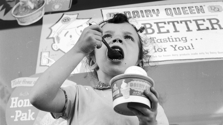 The Blizzard, and its often inverted presentation, began with DQ chains in St. Louis, Missouri. The concept, however, borrowed from a gimmick at a local St. Louis frozen custard stand. There, Ted Drewes Frozen Custard had been selling its servings upside down for a few decades. Called "concrete," this ultra-thick custard didn't budge when upturned, and was a response to a teenage boy's persistence. Back in 1959, per Mental Floss, Steve Gamber was a daily customer at Drewes' stand, and always requested his frozen treats be thicker than the previous day's order. Drewes' concrete custard was the solution, and appealed to other customers too — enough that business was still booming even with fast food chains like DQ setting up shop nearby. When a local franchise owner saw the popularity of Drewes' serving method, he knew DQ could have success with the same concept and pitched the idea. In 1985, the Blizzard was born.