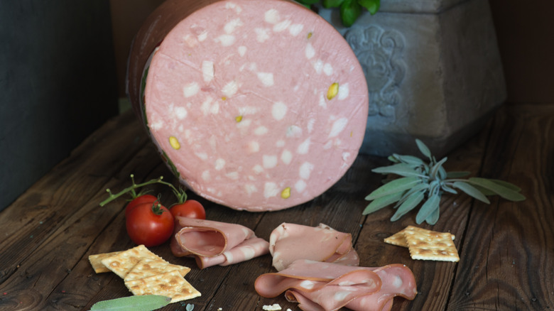 Mortadella is criminally underrated when it comes to Italian meats, but what, exactly, is it made of? It's often compared to bologna but is actually a type of soft salami. It's created by emulsifying meat and fat to create a creamy cold cut that melts on the tongue, unlike traditional bologna that's firmer with more of a bouncy texture. The result? An indulgent addition to any Italian sub that adds richness and a hint of salt and spice, thanks to the pistachios incorporated just before shaping. In a deli setting, ideally, mortadella is cut paper-thin with slivers of pistachio to cut through its fatty texture. Outside of a deli setting, well... It's anyone's guess how thin (or not) those slices will be.