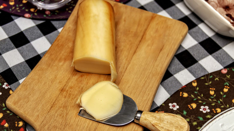 Provolone cheese is uniquely potent in its scent, but is still a deli favorite. It's the perfect counterpart to a turkey sandwich or an Italian sub and, yes, it almost always tastes better from the deli. To understand why a deli truly cuts the cheese better than the pre-packaged product, it helps to understand the process of making provolone. This Italian cow's milk cheese is made from curds of curdled milk. These are stretched to create a cheese-like texture and soaked in brine to produce that salty bite we all know and love. However — and this is a big one — there's also aged provolone. This is left to age for at least two months, giving the cheese an even more potent flavor but also developing its creamy texture. Now, take a guess at which cheese is served in most delis. Spoiler alert: It's aged provolone.