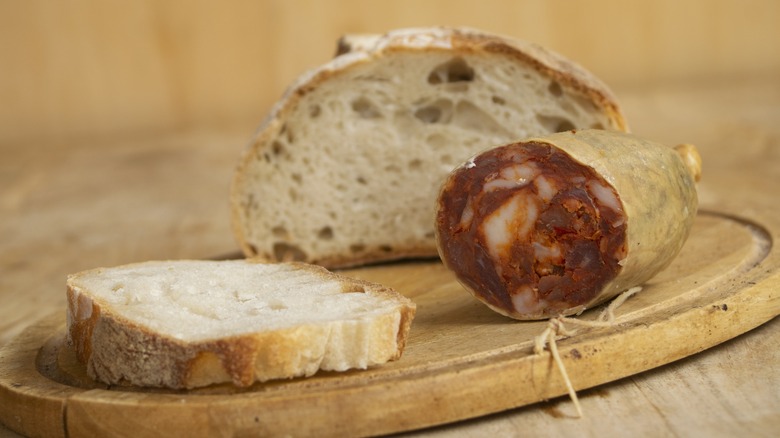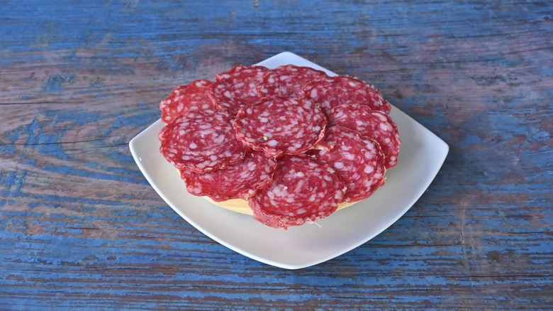 Another reason why sopressata is best ordered at the deli counter is because you want it sliced thinly. It's well-known that thin slices of meat have better flavor, because it has more points of contact in your mouth when you take a bite. For a meat like sopressata, this can improve texture because the fat and spices are more evenly dispersed in each slice. This is especially important for cured meats, as they often have a more potent flavor and can be overwhelming when slices are thicker. Unfortunately, this is a common faux pas that happens when slicing meat at home. Save yourself the fate of chewing down on a whole peppercorn and get that meat thinly sliced at the deli.