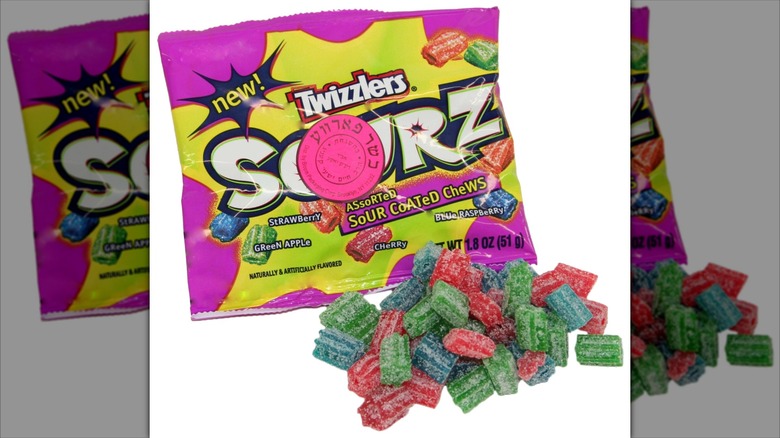 Sour versions of beloved candy are a time-honored tradition, and once upon a time it was Twizzlers' turn to have a lip-puckering version. This came in the form of the creatively-named Twizzlers Sourz, which were released around 2008. Twizzlers Sourz kinda looked nothing like regular Twizzlers, and if they didn't have the candy's name on the bag you wouldn't know that they were related. Sure, they were slightly twisted, ridged nubs of candy, but they were also coated in sugar (which is part of what makes sour candy sour), which sort of obscured their appearance.