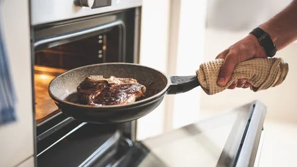 When it comes to cooking steak in the oven, not all cooking vessels are made alike. The best ones to use are those that can tolerate high heat and that are oven safe; the latter being something that may not occur to you until you place a skillet in the oven and have the handle melt, permeating the kitchen with toxic fumes that cannot be masked even by the sweet, meaty smell of a perfectly cooked steak.