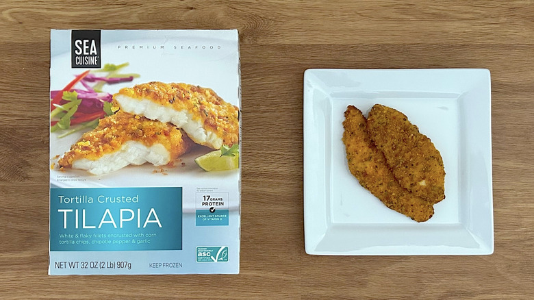 Fans online of Sea Cuisine tortilla-crusted tilapia are vocal about their love for this fish. On Reddit, one regular customer commented that they "buy those almost every time I go to Costco. I probably could eat it every day for the rest of my life and not get tired of it." Another Reddit user concurred that it's "one of the best breaded frozen [fish] in the club, make a big taco with lettuce and lime juice or citrus heavy hot sauce." Crispy tilapia would make this easy fish taco recipe even easier.