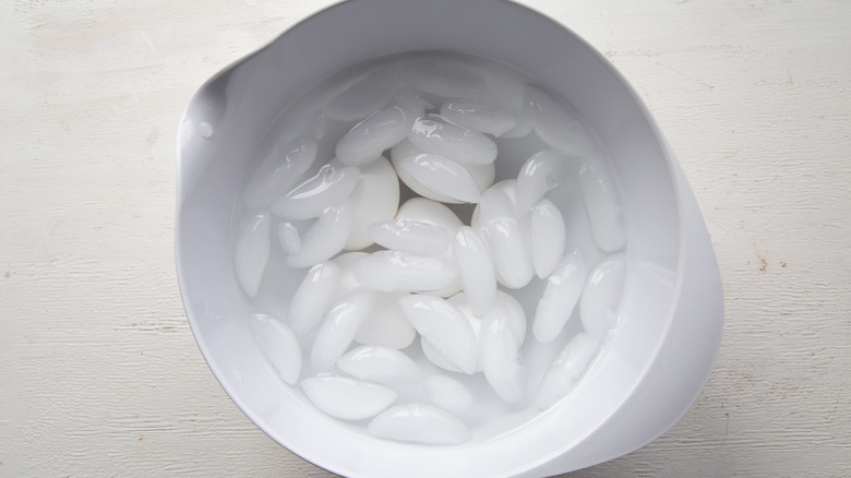 While the eggs are cooking, prepare a large bowl of ice water.