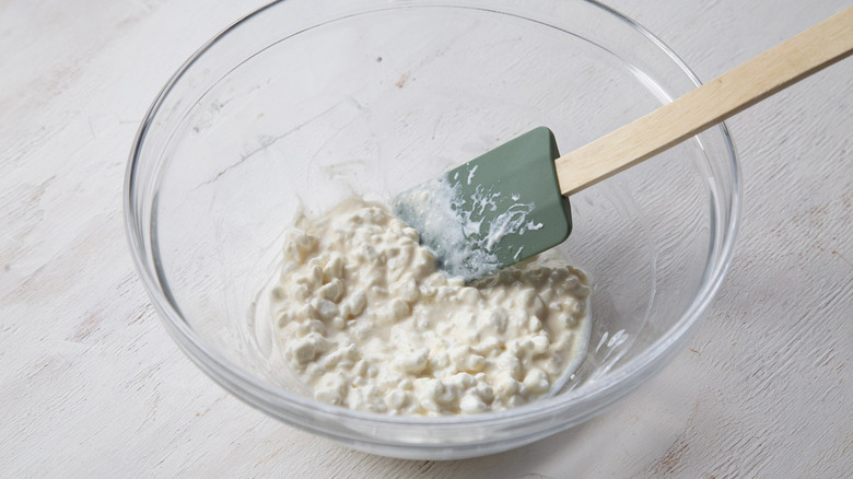 - In a large bowl, stir together the cottage cheese, Dijon, lemon juice, and salt.