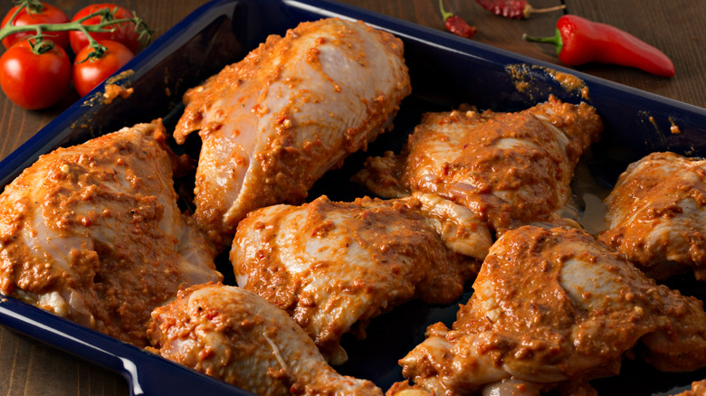 Depending on the kind of grilling you're doing, you don't always need to marinate your skin-on, bone-in chicken thighs for the best result. According to Antonio Iocchi, he uses a ceramic pot-style grill and notes: "This style of grill helps retain juice and flavor, so even simple seasonings like salt and pepper can produce delicious results."