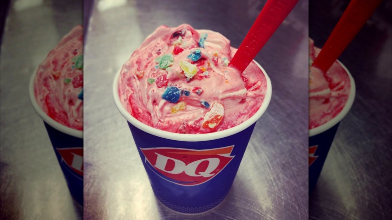 An ice cream combined with a totally delicious candy — yep, we're in. Dairy Queen clearly knew exactly what it was doing when it came out with its Sour Patch Kids Blizzard in 2019. This dessert took the pretty unique approach of combining Dairy Queen's ice cream with pieces of the sour gummy candy, and favored chewiness where other desserts go for crunch. It was a little bit of a risk, which was made even more high-stakes by the potential for this ice cream to just be too unpleasantly acidic and tangy.