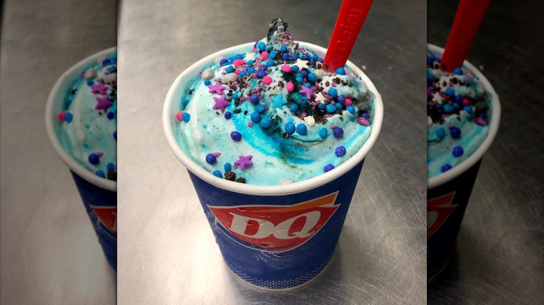 Every few years, some wild stunt related to space rolls around and gets everyone talking. In 2025, it was the fact that Katy Perry went into space for roughly two minutes; back in 2019, it was the debut of the Zero Gravity Blizzard. This Blizzard was released to celebrate the 50th anniversary of the moon landing, and quite honestly, it was a serious sight to behold. Dairy Queen announced on X, formerly known as Twitter, that the dessert was made with "Oreo cookie pieces, sparkly cosmic swirls and sweet cotton candy topping blended with our world-famous soft serve and topped with colorful galaxy sprinkles." In practice, that translated to a Blizzard that was astonishingly colorful and bursting with sugar..