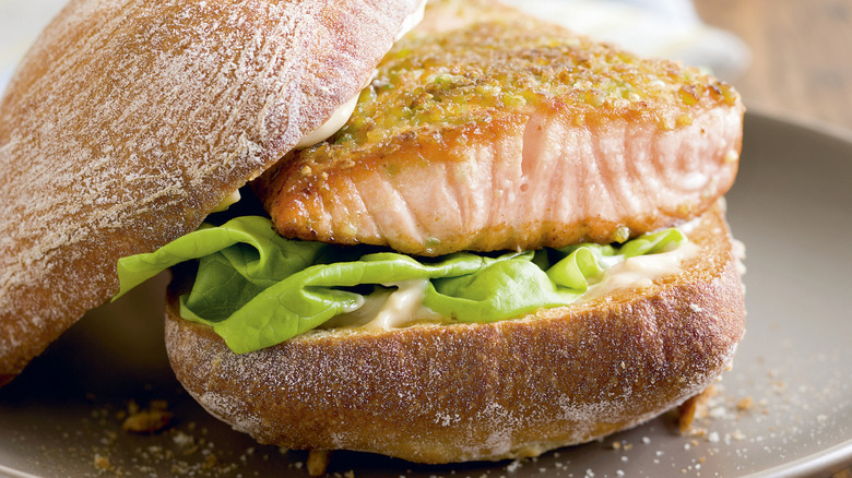 If you or the people you're cooking for are less adventurous, an herb-crusted salmon burger is a simpler but no less delicious option. Eric Cook says, "My favorite is to bread and gently sear the salmon in fresh herbal breadcrumbs. This gives the entire flavor profile a huge kick."