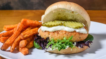 If you're looking for something even more adventurous for your salmon burger, Eric Cook shares, "Changing the flavor profile of salmon can be as easy as challenging yourself to explore new flavors, like Asian with a tangy sweet and sour sauce and bright kimchi to balance it out."