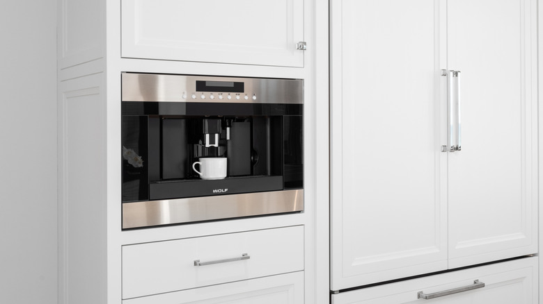 A built-in coffee system is exactly what it sounds like: A machine mounted into your cabinets or walls that makes espresso and coffee drinks. The main attraction here is the modern aesthetic and extra countertop space, but a high-end system can have a variety of features and provide a slew of quality beverage options. It's like having your own personal barista at home.