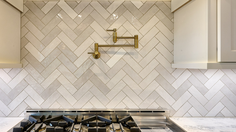 Also called a pasta faucet, a pot filler faucet is a kitchen upgrade that's installed on the wall above your stove top. The arm of the faucet is foldable against the wall when it's not in use, and you can pull it away from the wall and over the pot on your stove for easy filling. It's beneficial if you have a small sink or a short faucet and can't easily fit a large pot inside to fill it. Also, you don't have to carry a pot full of water from the sink to the stove top.