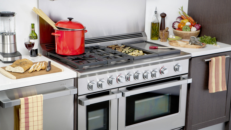 While this might sound like a dream come true, Brandy Rinehart warns that a professional-grade range can run hot and heat up your entire kitchen. Also, its size and that of the high-capacity range hood will take up more real estate in your kitchen. The vent hood will need to match the cooking surface's width and the BTU rating of the range for sufficient ventilation, so you'll likely lose some cabinet or countertop space just to install these appliances. It's important to keep in mind, too, that forgetting to turn on the exhaust fan is one of the mistakes everyone makes when cooking on a gas stove top but can mean poor air quality.