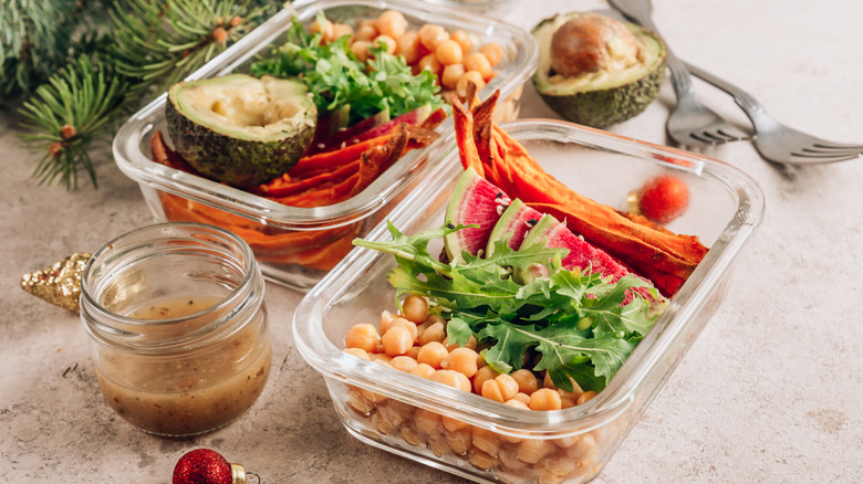 One of the biggest mistakes people make when meal prepping is using the wrong container, and Carte feels Mason jars make bad homes for such meals, largely due to their confined space. "Thoughtfully prepared meals shouldn't be squished together in a tight space. It affects both texture and presentation." Carte also dislikes "the small opening which makes it difficult to access food." While jarred meals may look visually appealing, they often lose that appeal when awkwardly dumped onto your plate. And although they work well for storing one ingredient, Carte explains that a balanced meal contains multiple components, and Mason jars struggle to provide adequate separation. "Moisture tends to collect at the bottom, causing ingredients — especially those near the edges — to become slimy or unappetizing over time."