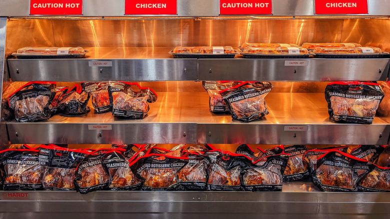 There are lots of clever ways to take rotisserie chicken to the next level, like making a smoky chicken salad. And perhaps the simplest way to enjoy the savory container liquid is to roast vegetables with it. If you made the rotisserie chicken yourself, you might put vegetables underneath to soak up the juices while cooking. Similarly, you can toss mixed vegetables in the liquid and roast them for a savory flavor boost.