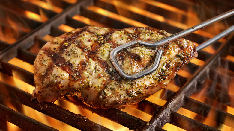 Chicken parmesan is an absolute classic when it comes to hearty, Italian-American comfort food. The crispy-fried, breaded chicken breast smothered in tomato sauce and melted cheese hits the spot every time. Unfortunately, it's not the healthiest option to eat fried chicken every time the craving strikes, so if you want the flavors of classic chicken parm on a regular basis, you've got to find ways to make a lighter version. That's where the grill comes in.