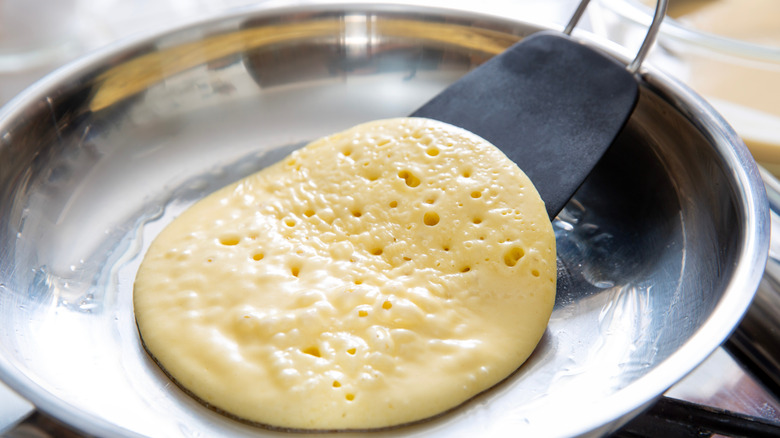 Along with all the logistical tips, you also need to make sure that you're in the right mindset — specifically, you need to be patient and confident to flip your pancakes perfectly. Colin Bedford warns about being "too eager to speed up the process" and suggests using visual cues to guide the timing. Bedford explains, "Flip the pancakes when you see bubbles forming on the surface and edges starting to look set. This indicates the pancake is cooked enough to hold its shape when flipped. Flipping too early can lead to batter splattering and misshapen pancakes."