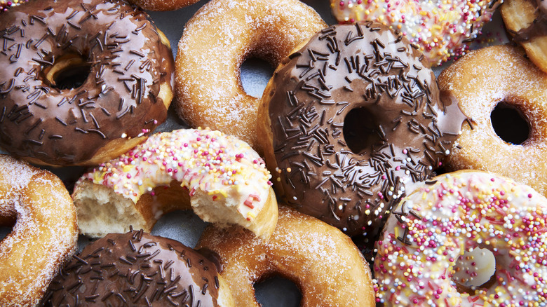Store-bought pancake mix isn't just for breakfast dishes — you can also use it to make a host of desserts, including homemade donuts. One of the best things about store-bought pancake mix is how adaptable it is, meaning that you can add pretty much any extra flavorings you like to it. This is perfect for donuts: You can dash some vanilla extract into the batter to give them a sweet, spicy note, go for strawberry extract for brightness, or even add in some lemon extract for a touch of acidity. Match your flavors with your donut glaze, and you've got an after-dinner treat that your friends will love you for.