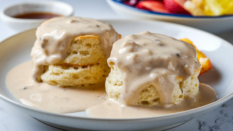 If you've run out of biscuit mix, there's no need to worry — store-bought pancake mix is here to save the day. The difference between pancake mix and biscuit mix really isn't that big, and they often use pretty interchangeable ingredients. Plus, if you're using a buttermilk pancake mix, you can get that delicious sour flavor without the use of actual buttermilk, making this the perfect substitute for when you don't wanna head out and get any extra ingredients.
