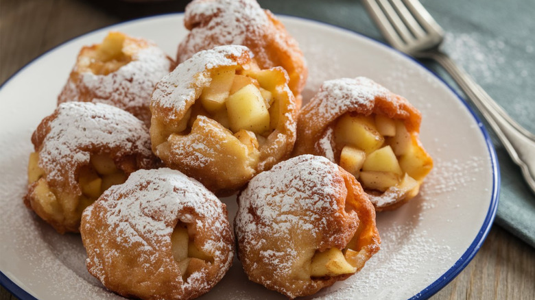 Sometimes, an ingredient that seems like a substitute can actually make a food better. This is precisely the case when it comes to apple fritters, which can be made even better by using pancake mix instead of your regular dry items. Standard apple fritters are made with a yeast dough that requires several hours of proofing, but can still end up heavy and dense. Conversely, apple fritters made with store-bought pancake mix have an easy lightness to them, thanks to the baking soda and other leaveners in its formula, and you don't have to wait around half the day for them to be ready.