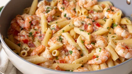 Give your creamy shrimp penne a zesty and spicy twist with the addition of fresh pico de gallo. This satisfying dish is ready in just about 30 minutes.