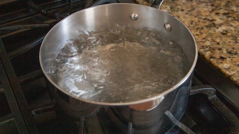 - Bring a large saucepan of water to a boil over medium high heat. Add salt until the water is salty like the sea.
