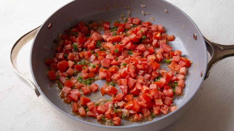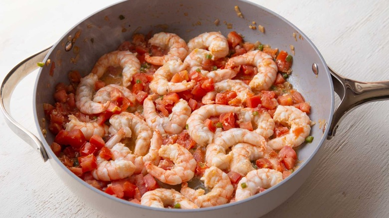 Roma tomatoes work well here, but so does any other variety, according to Shungu, "including grape and cherry tomatoes — just add them with the shallots and cook until they burst." Although shrimp works well as the star of this dish, Shungu suggests, "Replace the shrimp with chicken or leave it out altogether for a meat-free meal." Finally, if you want to steer the recipe toward a more traditional pasta flavor profile, you can "swap the cilantro for basil and leave out the jalapeño for an Italian-inspired twist on the meal."