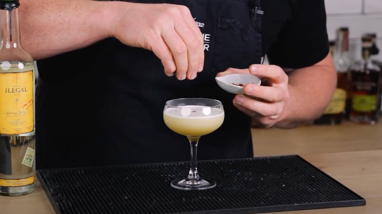 The mezcal in this cocktail is then layered with Cynar, a bitter Italian aperitif that fills in the more astringent notes. Sherry brings a light sweetness and a wine-like flavor, and the cocktail is finished with bitters and a pinch of salt. As you'd probably expect, this cocktail is really for those folks who like their drinks complex and lacking in sweetness: It's dry, it's smoky, and it can be a little overwhelming if you're not used to it. What it isn't, though, is a cigarette in a glass — so rest assured on that one.