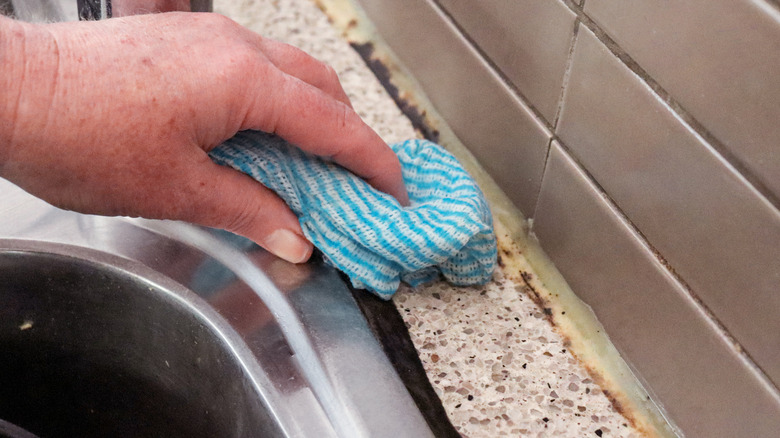 It's wise to keep an eye (and nose) out for any of these signs, and if you spot them, you should definitely consider whether it's time for a remodel. Once mold has set in, it's almost impossible to get rid of without ripping everything out and starting again. Over time, mold will continue to fester and spread into every part of your kitchen, and you can't exactly remove all the moisture from it to help slow growth — kitchens need to have running water and are constantly warm and steamy, after all. Although you might be able to get rid of isolated spots, widespread mold requires professional intervention.