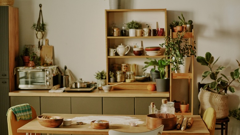 As time's gone on, it feels like everything's got bigger — and that's certainly true of food. Not only have food products themselves got larger, but the sheer amount of options available is way bigger than it would have been for previous generations, thanks to our increasingly globalized world and interest in international cuisines. Unfortunately, this also means that food, and appliances or those essential kitchen tools that we use to cook them, take up more and more space in our kitchens. If you find that your kitchen can't hold it all and things are spilling out onto countertops, you may need a remodel to increase storage space.