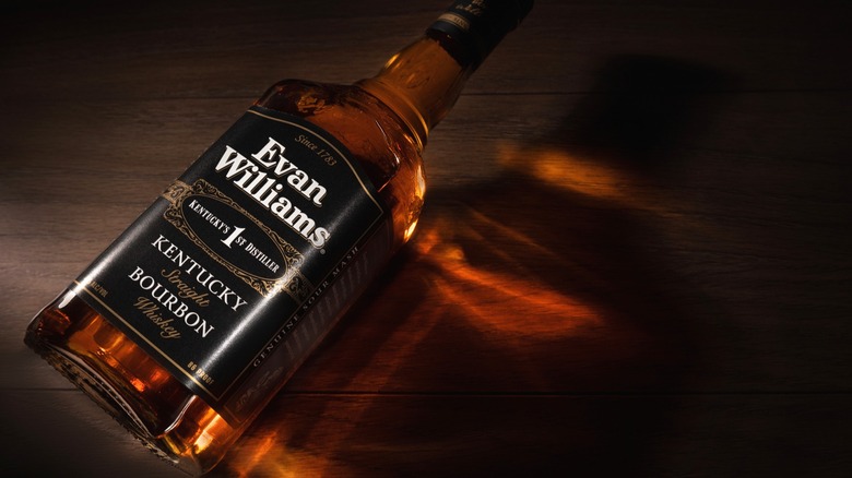 Evan Williams is widely regarded as one of the more decent lower-end bourbons on the market. The brand's Kentucky straight bourbon, familiarly known as "black label," generally retails for well under $20 for a standard sized bottle, and that friendly price point has helped it become one of the most popular bourbons both in the U.S. and across the globe. It's not just the tiny price tag that fuels its sales, though — it has also won multiple spirits awards over the years, making its low cost even more appealing. It comes from the Heaven Hill distillery, which produces other quality wallet-friendly brands like Elijah Craig and Larceny.