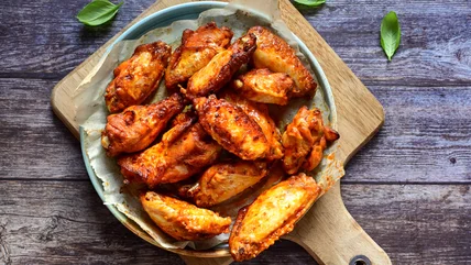 Matijevich's preferred method, which he calls "unconventional," is none other than the air fryer. The chef tells us, "I like to toss frozen chicken wings in the air fryer at 425 degrees Fahrenheit for 20 to 30 minutes. I flip them halfway through and once they are nice and crispy, I toss them in my favorite wing sauce." And if you need sauce ideas, you can steal the sauce recipe from our sticky Cantonese barbeque chicken wings.