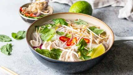 A rich, umami-packed bowl of soupy noodles can be the ultimate balm to nourish your body and soul. And nothing fits the role better than the steamy national dish of Vietnam: pho. The traditional pho recipe calls for both beef and beef bones (for the broth), but a pot of shortcut healthy chicken pho can be just as satisfying. And if you happen to have picked up a rotisserie chicken, you can whip up this in minutes. But you don't need a whole chicken to make pho — leftovers work just as well.