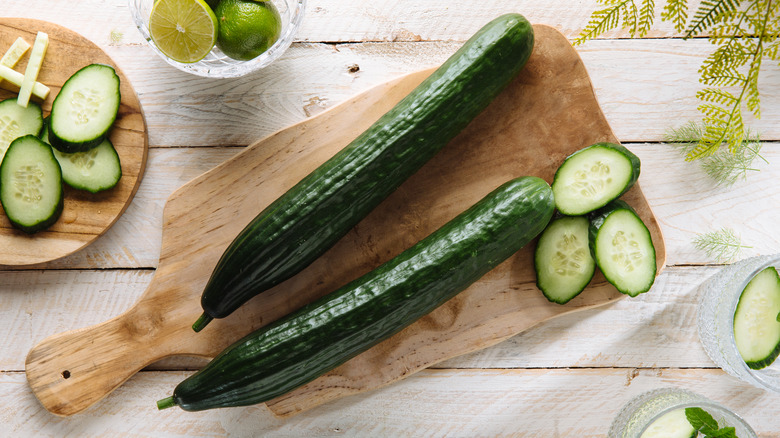 In terms of sangria, I prefer to use English cucumbers over any other variety. English cucumbers are distinct owing to their thin skin, scant seeds, firm flesh, and sweet flavor. When adding these to sangria, I generally peel and remove the seeds from the cucumbers before cutting and tossing them into the blend. I find that cucumbers work most effectively in white sangria and are best accompanied by fruits similar in color, like grapes, apples, and honeydew melons.