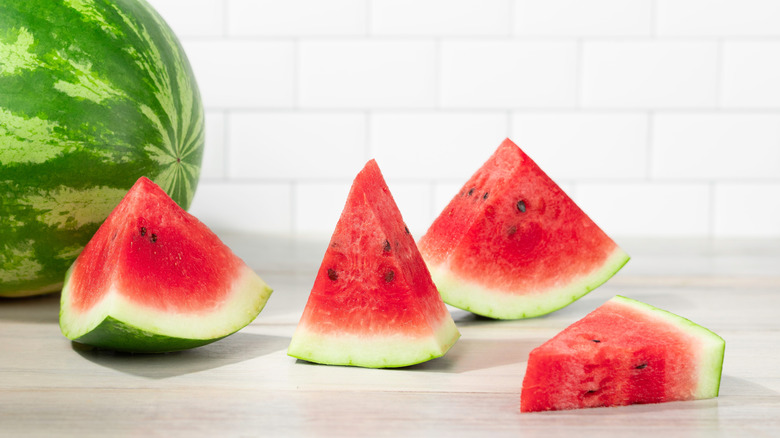 Though you can simply cut up some of the fruit to add to a sangria recipe, try adding some juice or even watermelon purée for even more flavor and a rich, unctuous mouthfeel. And, don't toss the watermelon rinds after adding the fruit. Save them and pickle them to create the perfect garnish for this refreshing libation, served in a glass rimmed with smoked sea salt, which is the quintessential accent to this fruit.