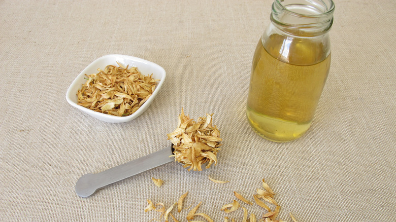 There are a couple of ways to use fresh ginger in sangria. First, slices of it can simply be added to the mixture and allowed to steep as the beverage marinates in the refrigerator. Another way to incorporate ginger is to infuse a simple syrup with it. This lends a more subtle flavor, which may pair better with a white or sparkling sangria. To drive home the flavor, try garnishing the ginger-infused sangria with bits of Trader Joe's crystallized candied ginger, or make your own by steeping slices of ginger in simple syrup and then allowing them to cool and dry.