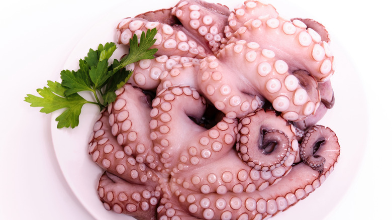 Octopus might last longer than some other fish on this list, but it's still a ticking clock. There might be some wiggle room between one and three days here, but octopus is still best when cooked on the same day as purchase. If you can't manage that, you've got another two days. It's also important to consult with your fishmonger before attempting to make any kind of nigiri or ceviche, and definitely don't make a raw dish if the octopus has been in your fridge longer than a day. After that first day, you're going to want to fire up a grill for it.