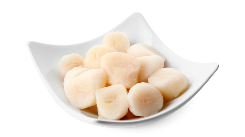 As with all seafood, scallops need a cold environment. Not only should they be stored on the bottom shelf, but they should be stored near the back of your fridge — in case you've never lost a soda can in your fridge's deep recesses before, the back is much colder than the rest of the fridge. Scallops should always be firm to the touch before you cook them. Fresh scallops will last one or two days.