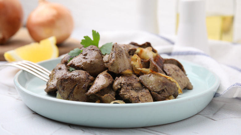 Since liver is something of a pop culture shorthand for unappetizing food, it's not surprising that this organ meat is on Guy Fieri's no fly list. Frankly, even if he wanted to feature some local hero chef's version of liver and onions on "Diners, Drive-Ins, and Dives," we have to imagine it'd be a long search to find a good one. How many TV-ready eateries in the U.S. are serving liver and onions?
