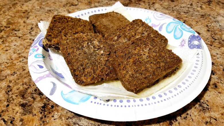 Say something is made from trimmings or scraps, and a lot of people are turned off. That's an understandable reaction, but a little unfair to the humble and delicious scrapple. This dish is basically meatloaf, except with pork and cornmeal. Call it, as Guy does, "funkadelic." It's sold pre-cooked, so you can even eat scrapple straight out of the package, although we recommend pan-frying it. The taste is sort of like breakfast sausage crossed with paté, and while Fieri certainly will not like hearing this, it's great with an over-easy egg served on top.