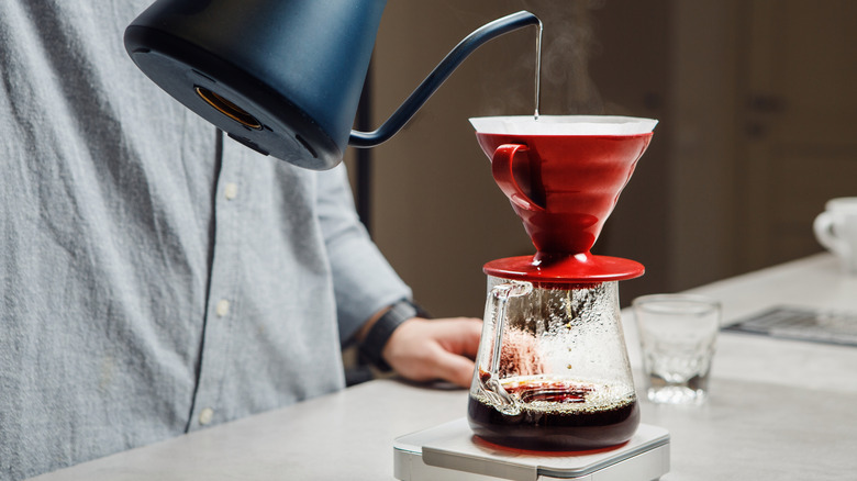 There's an optimal height for making pour-over coffee. Combined with the right pace and flow, it can help you create variations in the flavor profile and strength of your fresh brew. So instead of increasing the amount of beans, you can simply adjust the height and the time you take to pour. According to one study, as reported by NewScientist, you'll use 10% fewer coffee grounds by opting for this technique without compromising flavor. So, does the way you pour your coffee really matter? The short answer is yes.