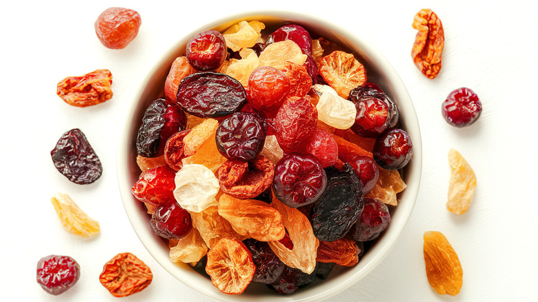 Besides dried varieties, you can use dehydrated fruits as they mix well with the scone dough without altering the texture of the final product. Dehydrated berries can add a pop of tartness that will break through the sweet flavor. Blueberry scones are luckily quite common, but you can positively experiment further with strawberries, raspberries, or even some lesser-known berry varieties. Lastly, don't stop there as you can definitely give other dehydrated fruits a shot. The possibilities include apples, pears, or even tropical varieties — like pineapples and mangoes. Just remember to mix these fruits in with the dry ingredients so they disperse within the dough evenly.