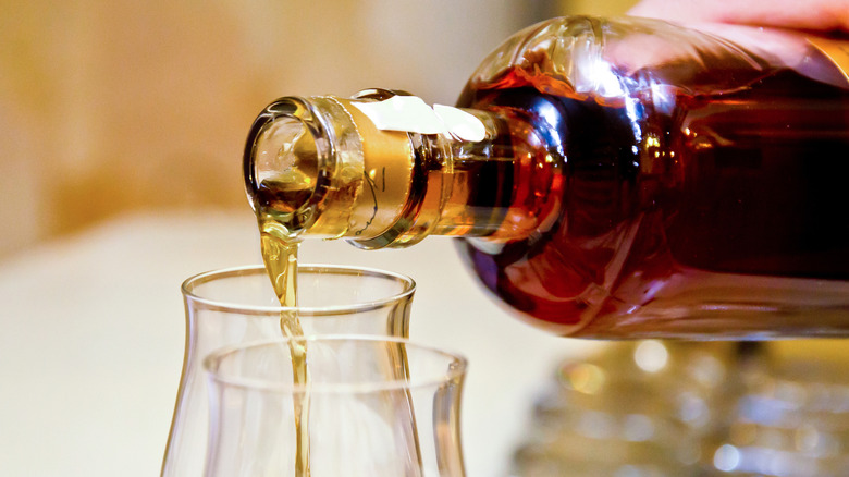 In the case of whiskey, you want to avoid serving anything that's not at or barely below room temperature. The best way to do this is to make sure bottles are always stored properly in a cabinet — or at least brought inside from the car or upstairs from the cellar well before tasting time begins. If anything feels too warm, there's nothing wrong with chilling it in a refrigerator (but not the freezer) for 10 to 15 minutes before pouring. In the moment, you can also avoid heating it up yourself by lightly holding the glass using just your fingers (not your palm) and keeping it on the table in between sips. And of course, if you're taking part in an outdoor tasting, keep the weather in mind and perhaps hold off on pouring tastes if intense heat or cold might affect your sample before you get around to tasting it.