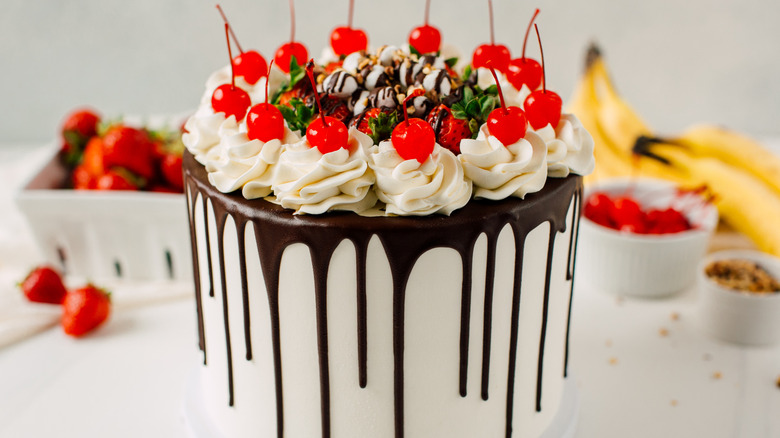 So-called icebox cakes — desserts that required chilling, not baking — were all the rage in the 1980s. The banana split cake, with its fresh fruit, whipped topping, and graham cracker crust, was a popular form of icebox cake. Whip this thing up using fresh but firm bananas. Since a banana split without maraschino cherries is not a banana split worth having, don't forget the red garnishes. Let it settle and rest for eight hours (not a moment less) to soften the graham crackers, and voilà! A cool, refreshing dessert for the warm weather months.