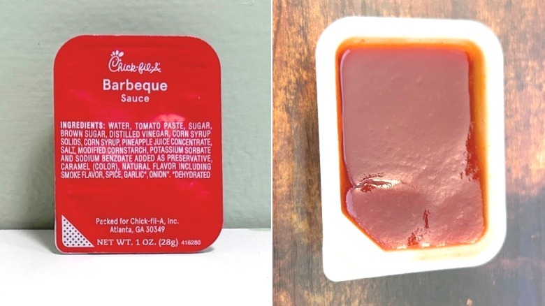 Opening the packet, I was greeted by a mildly sweet and somewhat tangy smell with the faintest hints of a citrusy scent. The sauce itself is a vibrant purplish-red that's slightly translucent and speckled with tiny white dots. Although this sauce was at the core of one of the biggest Chick-fil-A recalls due to a labeling issue, that issue's been corrected, so there's no need to worry about it now.
