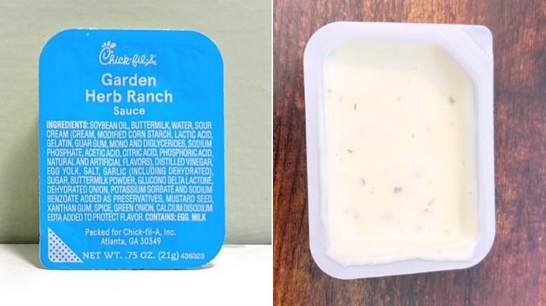 Here's where we start getting into slightly better sauces. The Chick-fil-A Garden Herb Ranch is your standard ranch sauce sprinkled with some fresh herbs for extra flavor. It does have allergen warnings for eggs and milk, but appears to be free of other major allergens (including wheat and gluten).