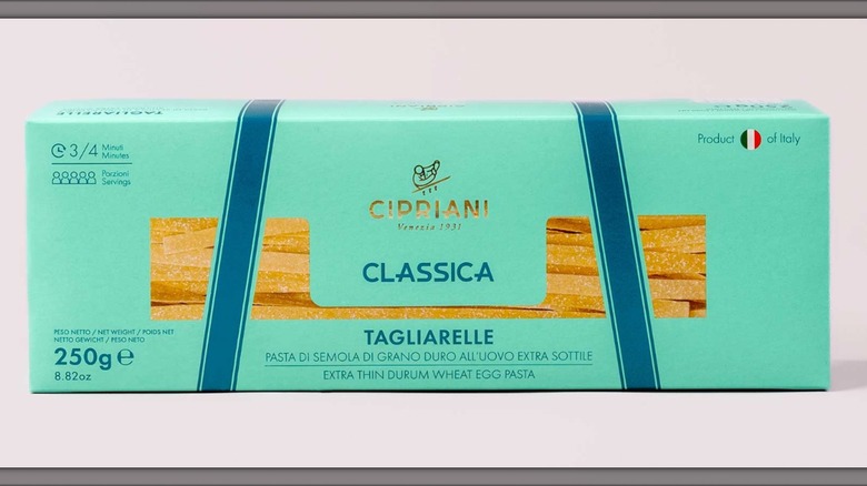 Garten prefers using the brand's dried pasta over fresh egg noodles (which is pretty high praise, right?), and she often goes for Cipriani's tagliarelle. This pasta cooks in just 3 minutes, despite being boxed and dried, and it's perfect paired with truffle butter, some heavy cream, and a little bit of Parmesan. With these ingredients, the pasta's flavor is allowed to shine through and not be overwhelmed, and you get to taste the quality of each individual component. You'll have to pay the price for this, though: Cipriani's pasta is a lot more expensive than other brands.