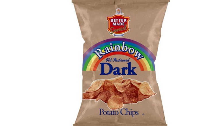 Better Made is most famous for Rainbow Chips, which are bags filled with browned, almost burnt scraps of potato that might otherwise get rejected. At first, Rainbow Chips were just leftover crisps, but customers liked them so much that Better Made had to start burning its chips with intention — and to be fair, calling what they do "burning" is slightly reductive. There's more to it than that. Better Made has collaborated with farmers for years to breed a potato with a higher sugar content. During the chip-making, those sugars caramelize. Sounds a little tastier and more scientific than simple charring, right?